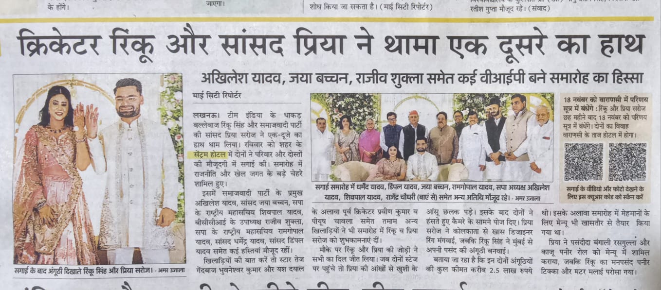This isn’t the first time The Centrum has played host to such noteworthy unions. Just days prior, cricketer Kuldeep Yadav celebrated his engagement at the same venue. The repeated preference for The Centrum by top celebrities cements its position as the best hotel in Lucknow for weddings, engagements, and elite gatherings.