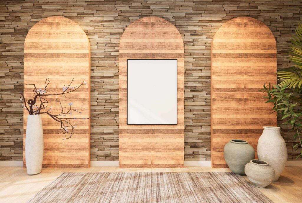 Choose wooden panels for budget-friendly interiors and stone cladding for lasting investment.